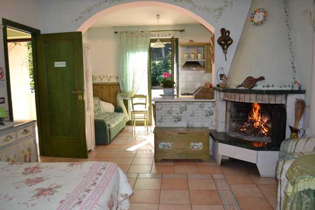 We make available even a little apartment provided with double bed, sofa bed, kitchen totally equipped, fireplace and private bathroom. The entrance looks at the kitchen, equipped with oven and refrigerator. A wonderful arch opens the living-sleeping area where there is the double bed, the sofa bed and a fireplace. Moreover, there is a private terrace with table and chair, ideal to spend relaxing moments in the open air. The bathroom is provided with shower, bidet and air dryer. At your disposal TV and Wi-Fi connection.