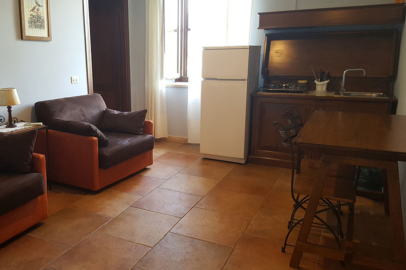 The agritourism offers studio apartments and two-rooms apartments, all comfortable and spacious. The two-rooms apartments are composed of living room and double sofa-bed and double bedroom with bathroom. The studio apartments, instead, are furnished with simplicity and still maintain the ancient atmosphere thanks to the details in wood and wrought iron. Every accommodation is provided with air conditioning, TV, fridge and kitchenette. Moreover, the breakfast is served in the kitchenette or, during spring and summer, in the common hall.
