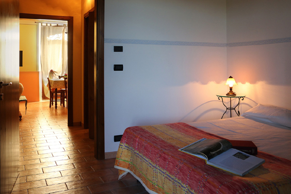 It is at the first floor and covers nearly 70 mq, for five or six beds. "Tramonto" is composed of living room with double sofa bed, kitchenette, fridge, microwave, bathroom with shower and bidet, double bedroom and triple bedroom with single bed. Moreover, at the guests disposal a private area in the garden where to prepare meals surrounded by the nature.
