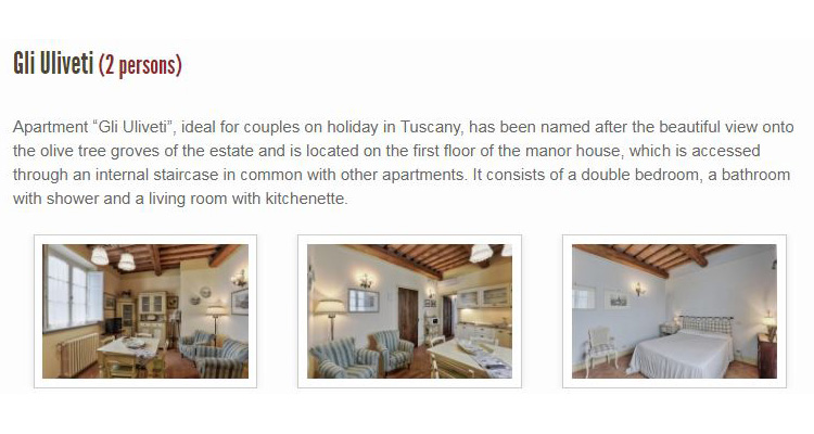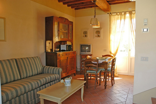 Our farmhouse dominates on more than 1000mq where there are eleven comfortable apartments that can house from two to five people. Every accommodation is furnished in Tuscan style and, thanks to cotto tile floors and the wooden details, it still maintains the ancient features of a rustic house. The tradition perfectly combines with the modern comfort, indeed the apartments are provided with heating, air conditioning, television, telephone, strongbox, hair-drier and free Wi-Fi connection. Every kitchen is equipped with fridge, flatware and little oven, while the bathrooms have linen, pool towels and courtesy kit. Moreover, the apartments are suitable for handicapped people and, for stays of more than a week, it is expected a change linen and a cleaning. On request baby crib. To read the descriptions of the apartments please click on the button below.