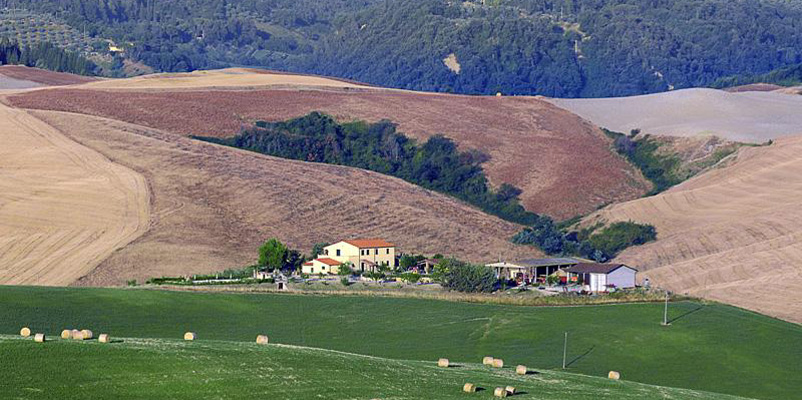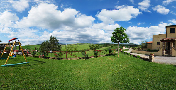 Agriturismo in Volterra (Pisa). Farmhouse in Tuscany with swimming pool, playground and apartments. Among the hills, ideal for wine tourism and cycling holidays. Oil and wine production, pets allowed.