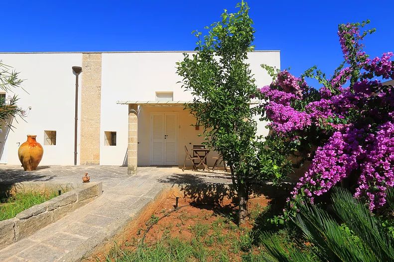 Our estate is a typical masseria, a traditional building that characterizes the Salento. We are in the southern Italy, in Presicce, a little hamlet in the province of Legge surrounded by old-centuried olive trees and historic heritages dating back to the X-XII centuries. Presicce is halfway from the Ionian and the Adriatic coasts, an ideal starting point to reach the wonderful beaches of the Salento up to Santa Maria di Leuca. The manor farm is located in a verdant place, a cozy place where to relax and discover the local traditions. Pets are not allowed.