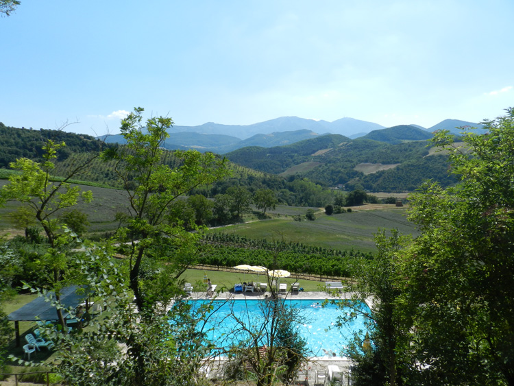 Our farmhouse is in Cagli in the province of Pesaro Urbino. A small rural village in the Marche region in the context of a wine producing company on the slopes of Monte Nerone. We offer our guests a large panoramic swimming pool (16 × 9), a tennis court and a dining room open in the summer months for two evenings a week and in other periods on request.