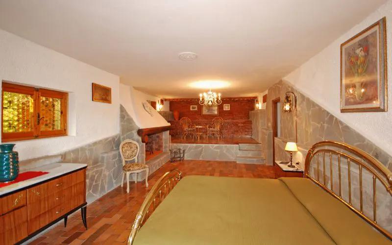 The property has a large park with tennis court and swimming pool with solarium, covered patio and night lighting. The swimming pool (15x7.5 m) is located in a beautiful position because the large equipped terrace offers a splendid view of the valley and the surrounding hills. The asphalt tennis court of regulatory size is available free of charge to our guests.