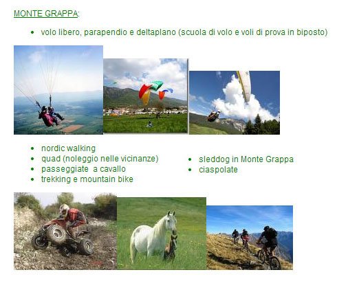 Sports lovers will be able to live many interesting experiences ranging from Asolo Golf Club, to trekking, horseback riding, mountain biking, to extreme sports such as rafting, quad biking, free flight, paragliding and hang gliding. Our holiday home is located in a strategic position because it is the perfect starting point to reach the most historic, artistic and cultural places in the Veneto region such as Bassano del Grappa, Marostica, Cittadella, Asolo, Venice or Vicenza.