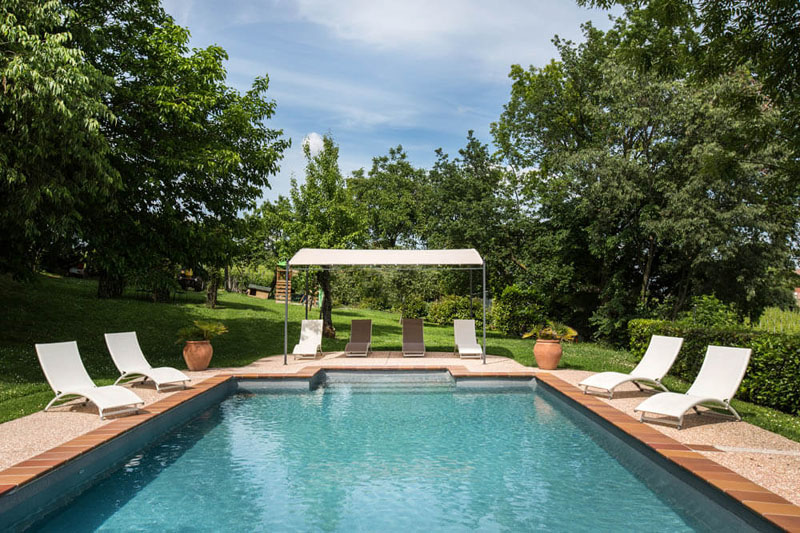 At guests' disposal a splendid swimming pool with magnificent views of the Monferrato hills and surrounded by a large sunny garden. The swimming pool is surrounded by a small park with a children's area and is equipped with deck chairs and umbrellas. We also have a modern SPA that offers services such as Finnish sauna, hammam, emotional showers, hydromassage pool, relaxation area, herbal tea room and massage room. A location enriched by a large panoramic window which leads to the private garden of the relaxation area and the outdoor swimming pool.