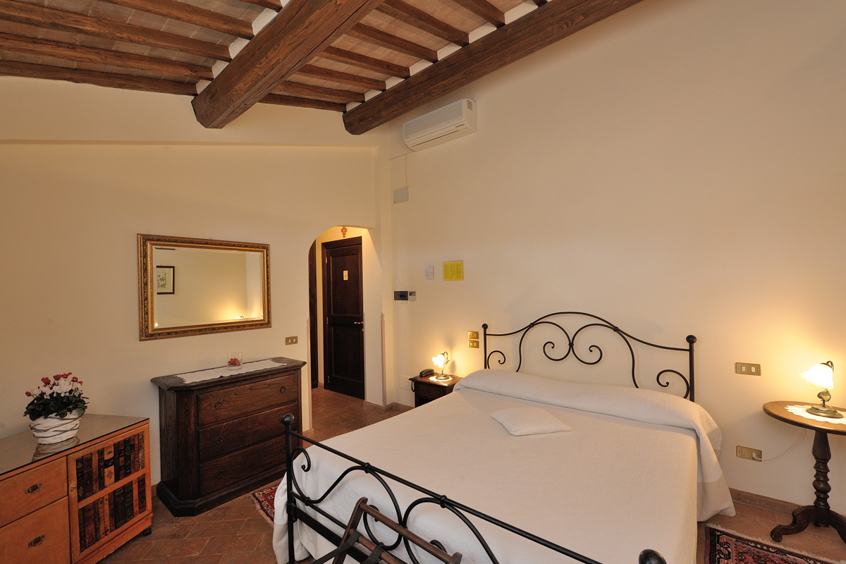 We have sixteen exclusive, relaxing rooms located in the four lovingly restored farmhouses, maintaining the essence and charm of the old days. They stand out for the care of the furnishings and details such as exposed beams, wrought iron beds, handmade furniture, curtains and blankets that come from the precious art of Montefalco embroidery. All rooms have air conditioning, TV, minibar, radio, safe, telephone, hairdryer, courtesy set and alarm clock. The Suites have an independent entrance, sitting area and Jacuzzi. To read the detailed description of the rooms click on the button.