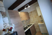 Ala is a two-room apartment of 52 m2 on two floors and sleeps 3+2. Downstairs: entrance, bathroom with shower, living room with kitchen, fireplace and sofa bed. Upper floor: double bedroom, single bed, air conditioning, bathroom with toilet and sink. A few meters away is a free-use laundry room. Outside, a reserved space with gazebo, table and benches. Services: TV, WI-FI, private parking.