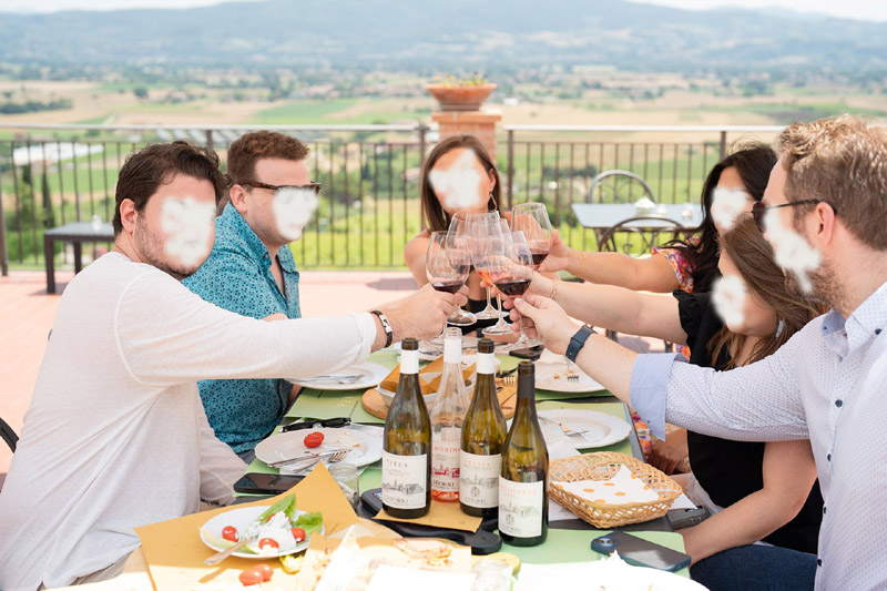 We offer tastings in the greenery of the Colli Perugini where you can retain the colors, scents and flavors while sipping a good glass of wine on the terrace admiring our vineyards. For those looking for something different from the usual we offer our cooking classes to learn and discover new things, having fun preparing typical dishes with local scents, flavors and products and experimenting together how to pair them perfectly with the right wine.